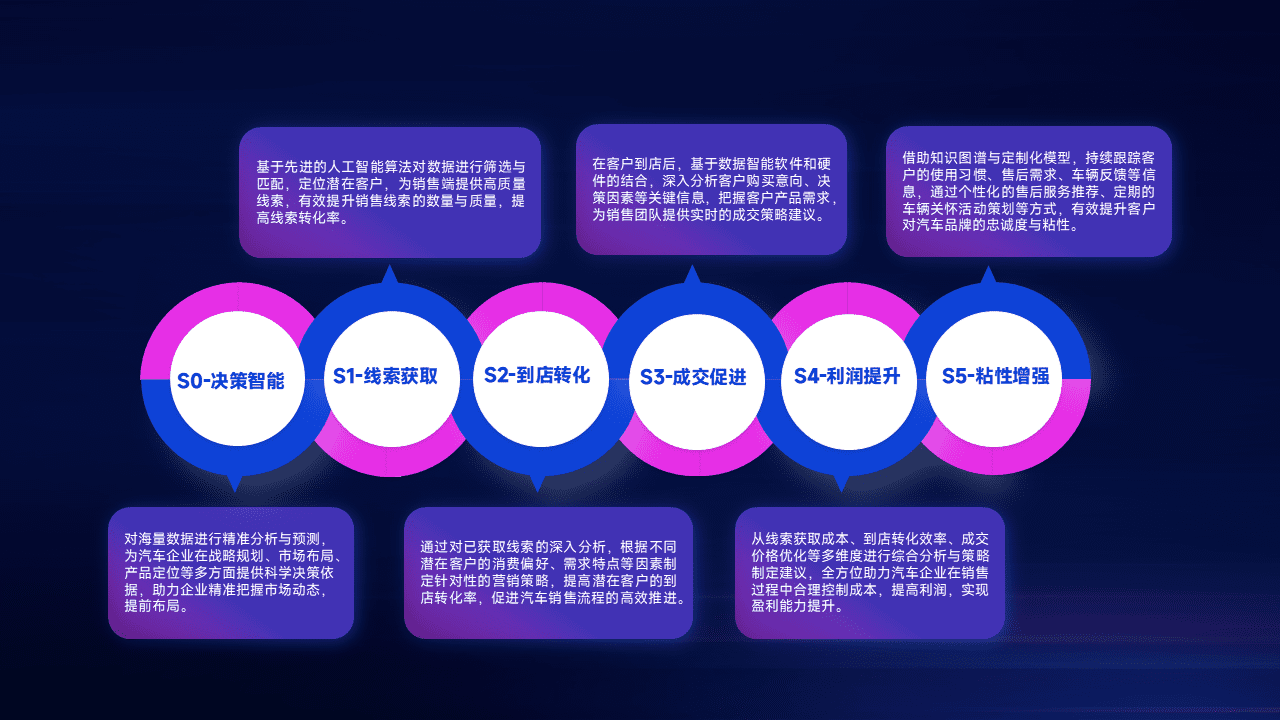 通过拓宽潜在客户来源、、优化线索分配并提高到店转化率,,,以增强销售效率。。。同时,,,利用线索数据不断优化分析模型,,,,有效提升转化率,,,,扩大营销影响力。。